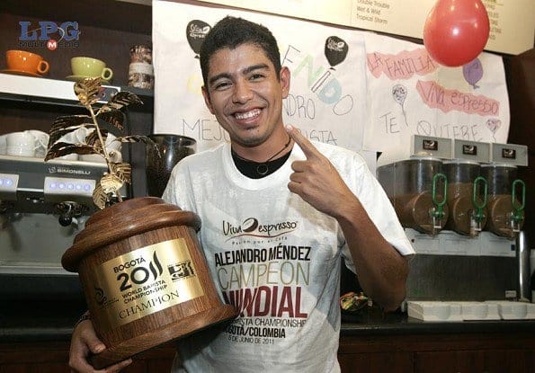 У 2011 році чемпіонат проходив у Боготі, Колумбія і нарешті перемогу одержав бариста з кавової країни! Це був Алехандро Мендес з Сальвадору. Звісно,він використовував каву зі своєї батьківщини, яка була вирощена на схилах вулкану Санта-Ана. Алехандро сказав, що ми маємо використовувати все, що дає нам кавова ферма, тож він використав м’якоть кавової вишні, яку він зібрав і привіз із собою на конкурс для підсолоджування свого фірмового напою, а також він використав квітки кавового дерева у своєму напої.