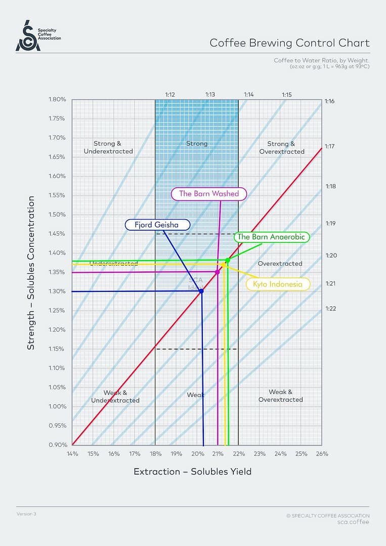 Отримані результати виправдали нашу стратегію заварювання надсвітлої кави. Ми отримали рекомендовану SCA кількість розчинних речовин для найкращого балансу.