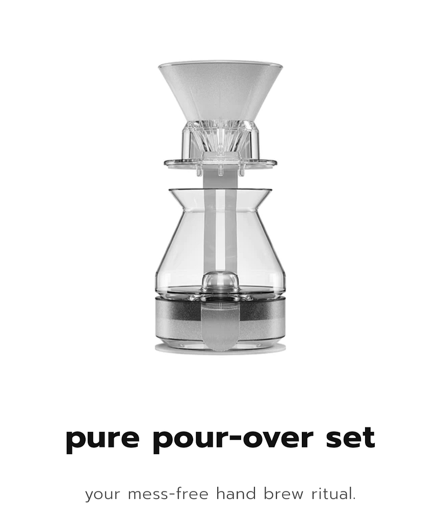 У нашому проєкті вплетені наші знання і бажання зробити життя любителів кави трошки кращим. Ми вирішили спростити життя і розробили продукт, який дозволяє насолоджуватися кавою без зайвих зусиль. Він поєднує в собі ергономічні рішення та відмінний смак кави. Тож, якщо ви любите каву так, як ми, тоді наш PURE POUR-OVER SET – для вас)