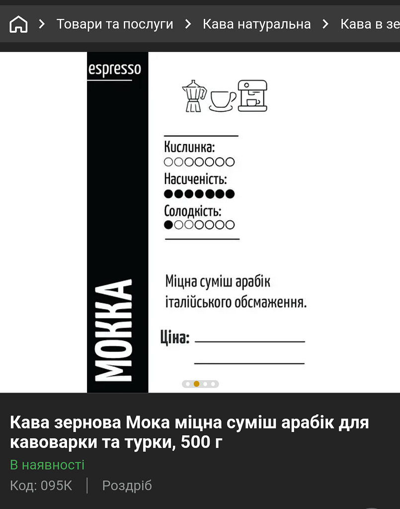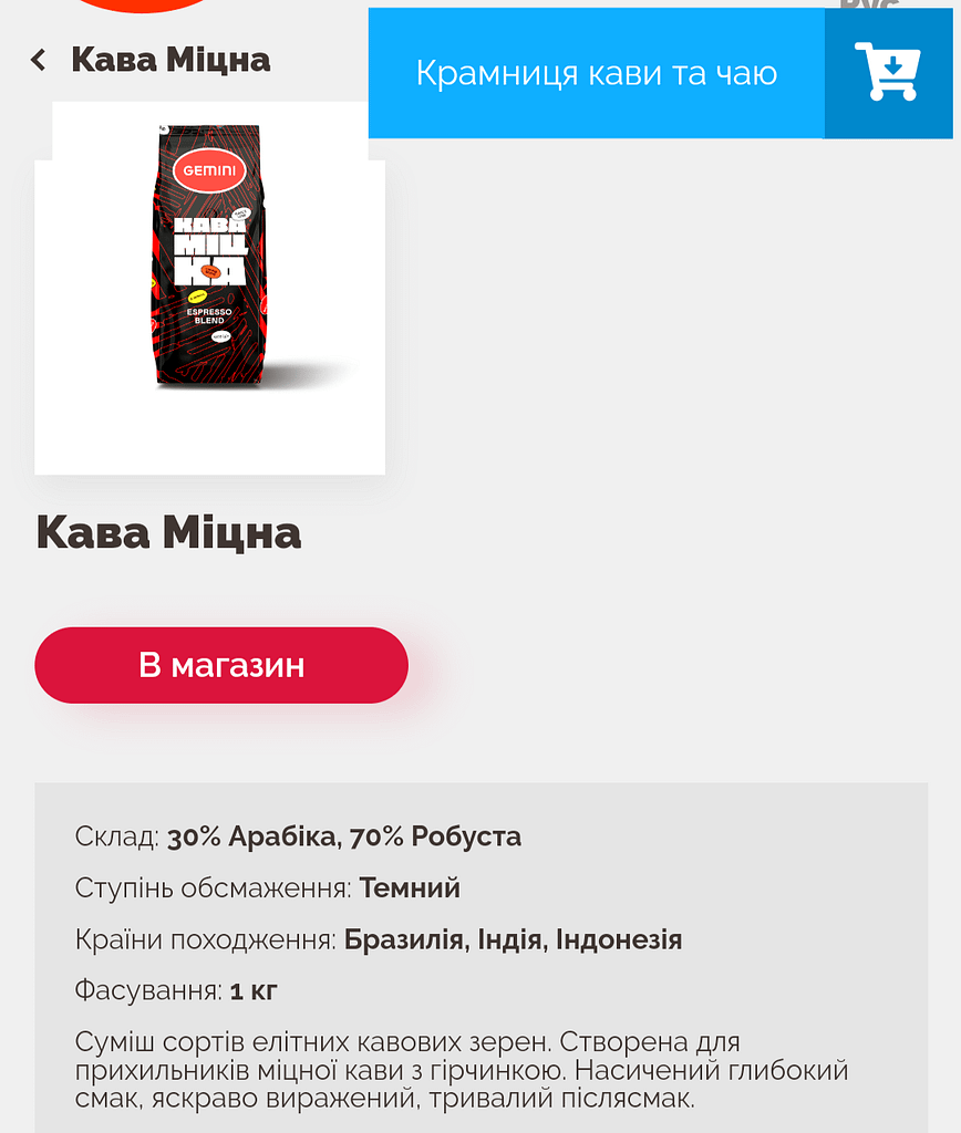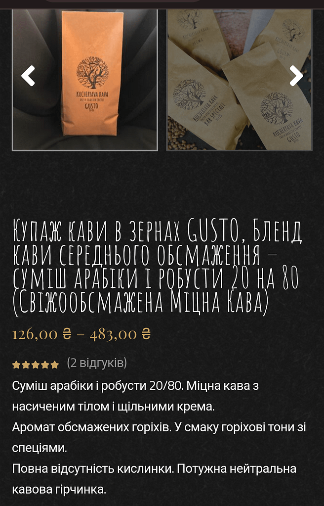 Наприклад компанії, які продають суміші з високим вмістом робусти, або якщо це виключно робуста, дуже часто називають ці суміші таким чином, щоб у вас склалось враження, що це дійсно міцна кава (приклади на фото).