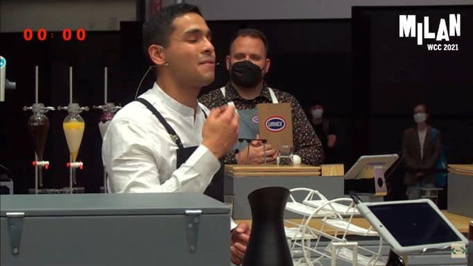 Нарешті, головний переможець чемпіонату бариста і найкращий бариста світу – Дієго Кампос з Колумбії. Колумбійці жодного разу не перемагали, тож це знакова подія для країни. У 2011 році перший представник країни виробника кави Алехандро Мендес з Ель Сальвадору переміг, використавши в авторському коктейлі диковинну на той час каскару – сушену м’якіть кавової ягоди.
