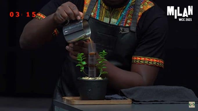 Перший африканець у фіналі найпрестижнішого кавового змагання. Мартін у виступі використав, звичайно, каву з Кенії, з плантації свого друга. Сорти, що рідко з’являються у асортименті кави speciality – батак і руіру. Мартін розповів, що в цій каві природно низька кислотність, тож фермер використовує цікавий метод, що допомагає підвищити кислотність ґрунту й таким чином додати фруктових смаків до кави. Він підживлює дерева вугіллям з кокосових шкаралупок, що підвищують рН.