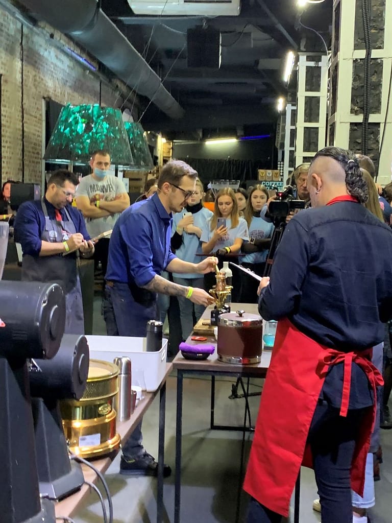 - Coffee In Good Spirits — чемпіонат «Кава й алкоголь». Це змагання намагається поєднати світ кавових і алкогольних барів. Дуже цікавий і смачний, на мій погляд. Учасники готують дві класичні ірландські кави (кава, цукор, віскі та вершки), і два авторські коктейлі з обов’язковим використанням кави.