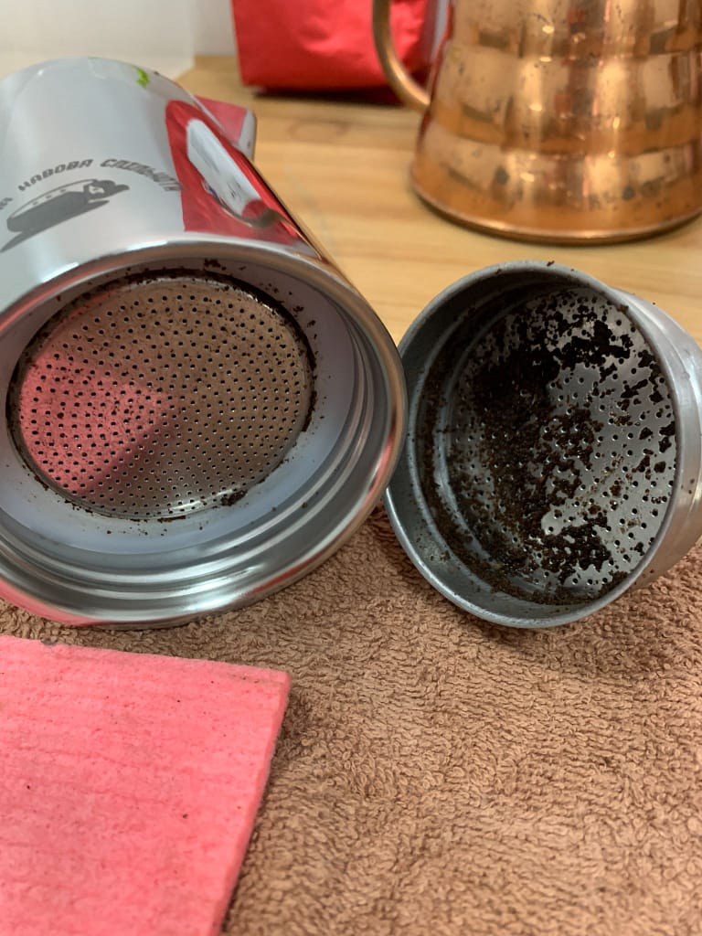 - наповнюєте кавою сито до країв (потрібно лишити трохи місця, бо кава розбухає від води);