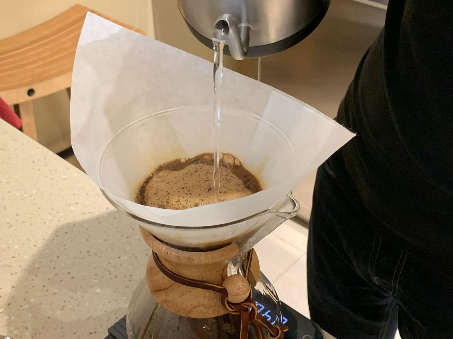 На прикладі кави, приготованої у Кемексі можна побачити результат налаштування помолу.